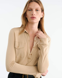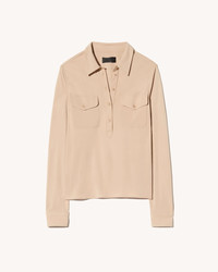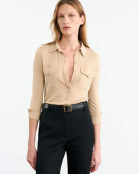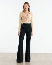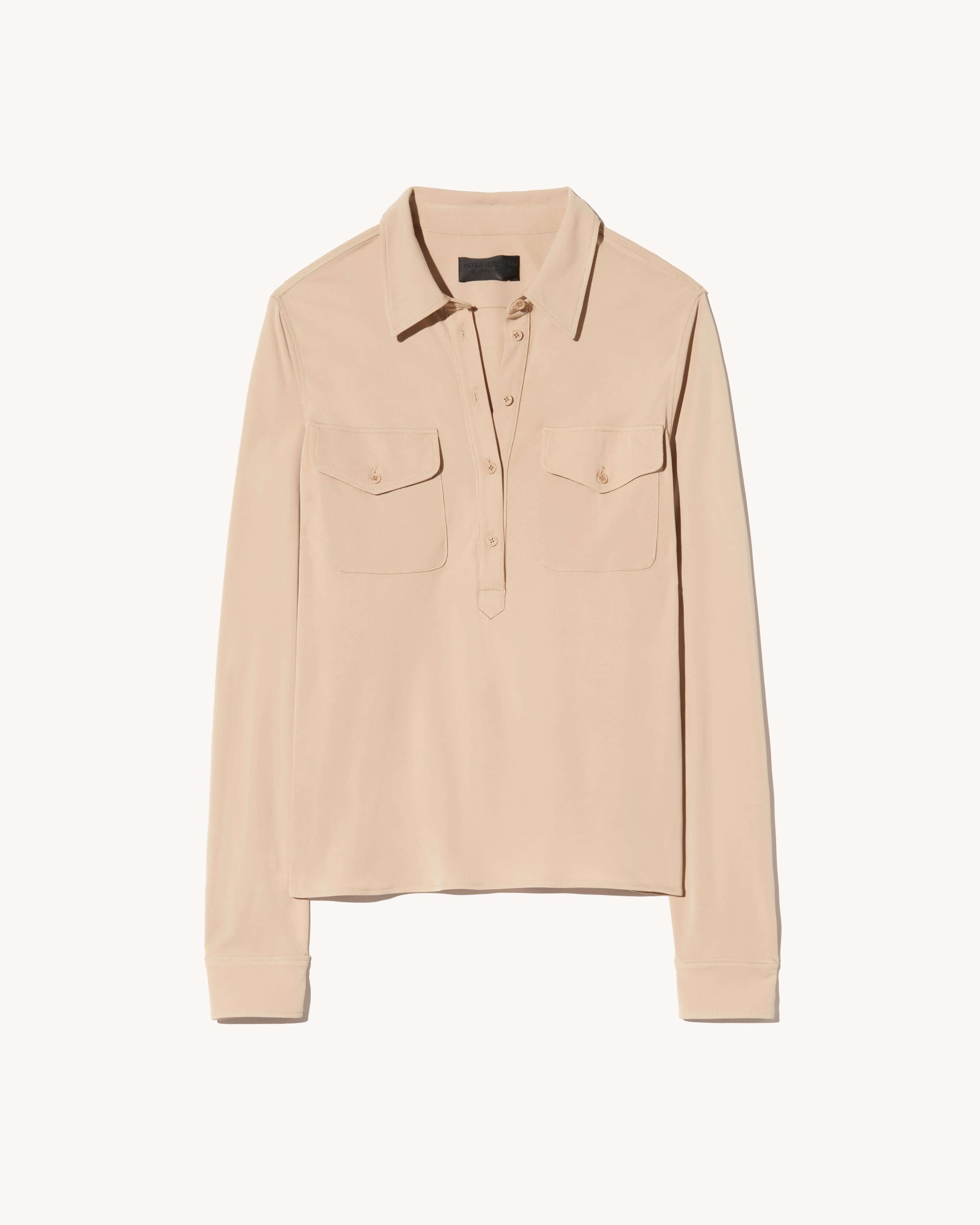 Slim pullover shirt in Italian viscose. Center front placket. Front patch pockets with flaps. Dyed to match logo buttons. Cuff placket with buttons. Back yoke. COMPOSITION & CARE 100% VISCOSE Dry clean only Low iron