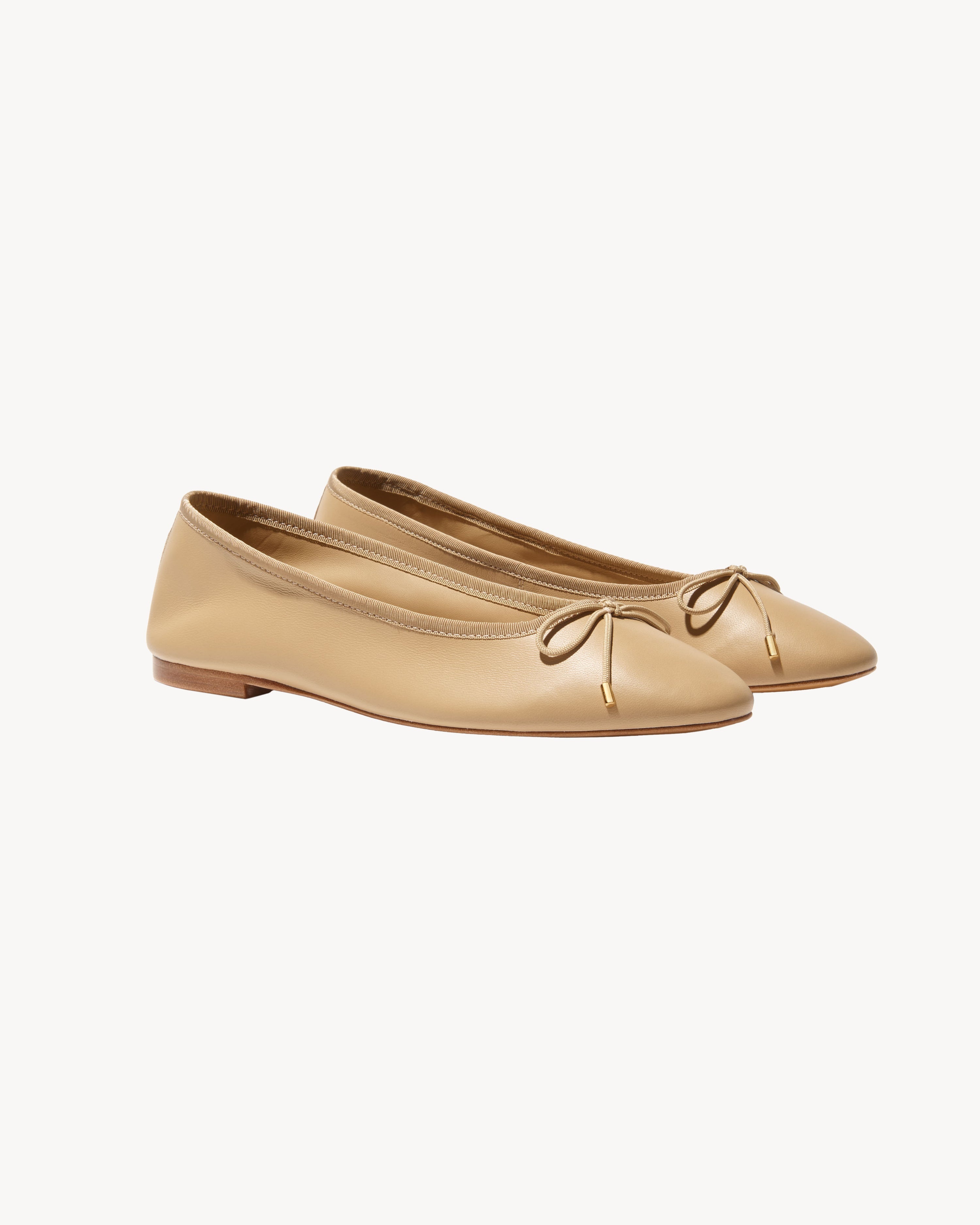 Slip on ballerina flat shoe in luxury lambskin leather. Luxury leather lining. Logo cord ends in gold. Fixed bow detail. Easily removable tacking. Logo stamp in gold foil. Wood sole and heel. Grosgrain trim. Dustbag included. Made in Brazil. SIZE & FIT Sizes are in EU sizing: 35 = US 5 35.5 = US 5.5 36 = US 6 36.5 = US 6.5 37 = US 7 37.5 = US 7.5 38 = US 8 38.5 = US 8.5 39 = US 9 39.5 = US 9.5 40 = US 10 40.5 = US 10.5 41 = US 11 41.5 = US 11.5 42 = US 12 COMPOSITION & CARE 100% Soft Lambskin Leather Made by Brazilian craftsmen with the highest quality leather, thus any variation in shade and texture are inherent characteristics of the product and not considered as imperfections. Leather naturally develops a patina over time. To ensure your item lasts and ages beautifully, we recommend the following: When not in use, lightly fill toe box with tissue paper to maintain its shape and store in original show box away from light, extreme temperature and humidity. SPOT CLEAN ONLY