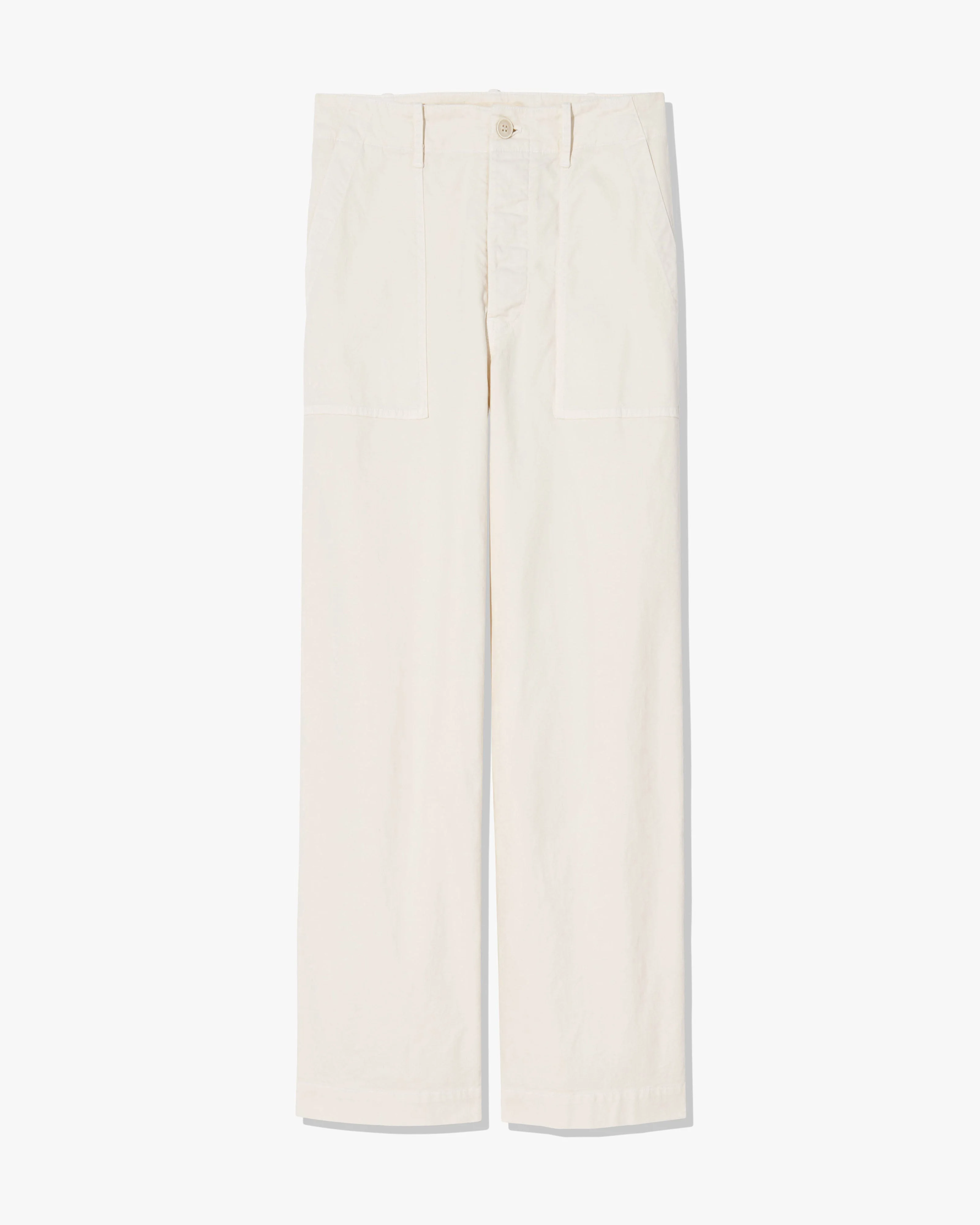 Flat front, mid-rise, relaxed wide leg pant. Patch pocket detailing. Back patch pockets. Fly closure. Made in USA COMPOSITION & CARE BUTTON BAG(0%):, MADE IN USA OF IMPORTED FABRIC MACHINE WASH COLD TUMBLE DRY LOW LOW IRON DRY CLEAN DO NOT BLEACH