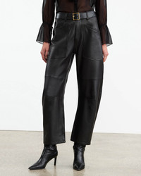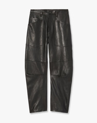 Mid-rise, relaxed fit pant in Italian lambskin leather. Uniquely curved silhouette. Seam detail at knees. Gusset at inseam. Zip fly. Shank closure. Top-stitched front and back patch pockets. Belt loops. Spray back interior to prevent leather from crocking. COMPOSITION & CARE 98% COTTON 2% ELASTANE PROFESSIONAL LEATHER CARE ONLY SPOT CLEAN ONLY