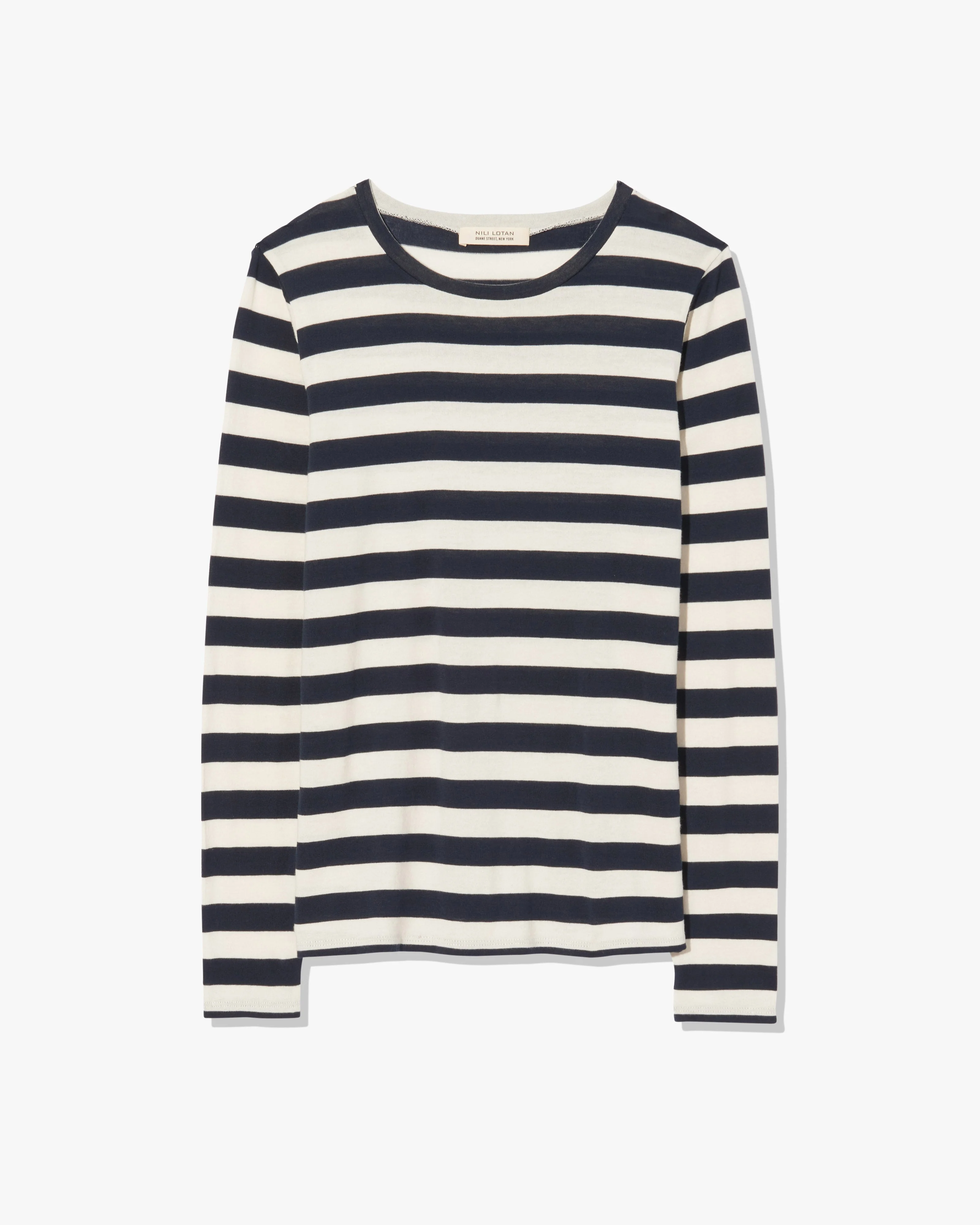 Slim long sleeve crewneck tee in premium American cotton. Straight hem. Made in USA COMPOSITION & CARE 100% Cotton Machine wash cold Do not bleach Do not tumble dry Medium iron