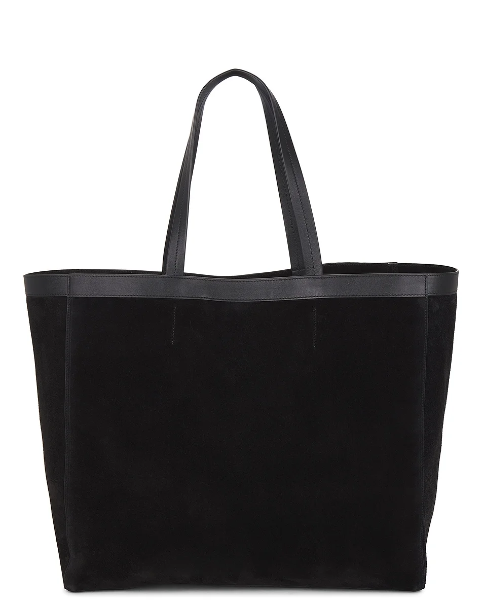 Details - Black suede exterior and tonal leather trims - Made in Italy - Open closure - One main compartment - 1 interior zip pocket - Measures approx 56 cm W x 36 cm H x 14 cm D - Top handle with a 25 cm drop - Our Style No. NILF-WY3 - Manufacturer Style No. 13298-L96