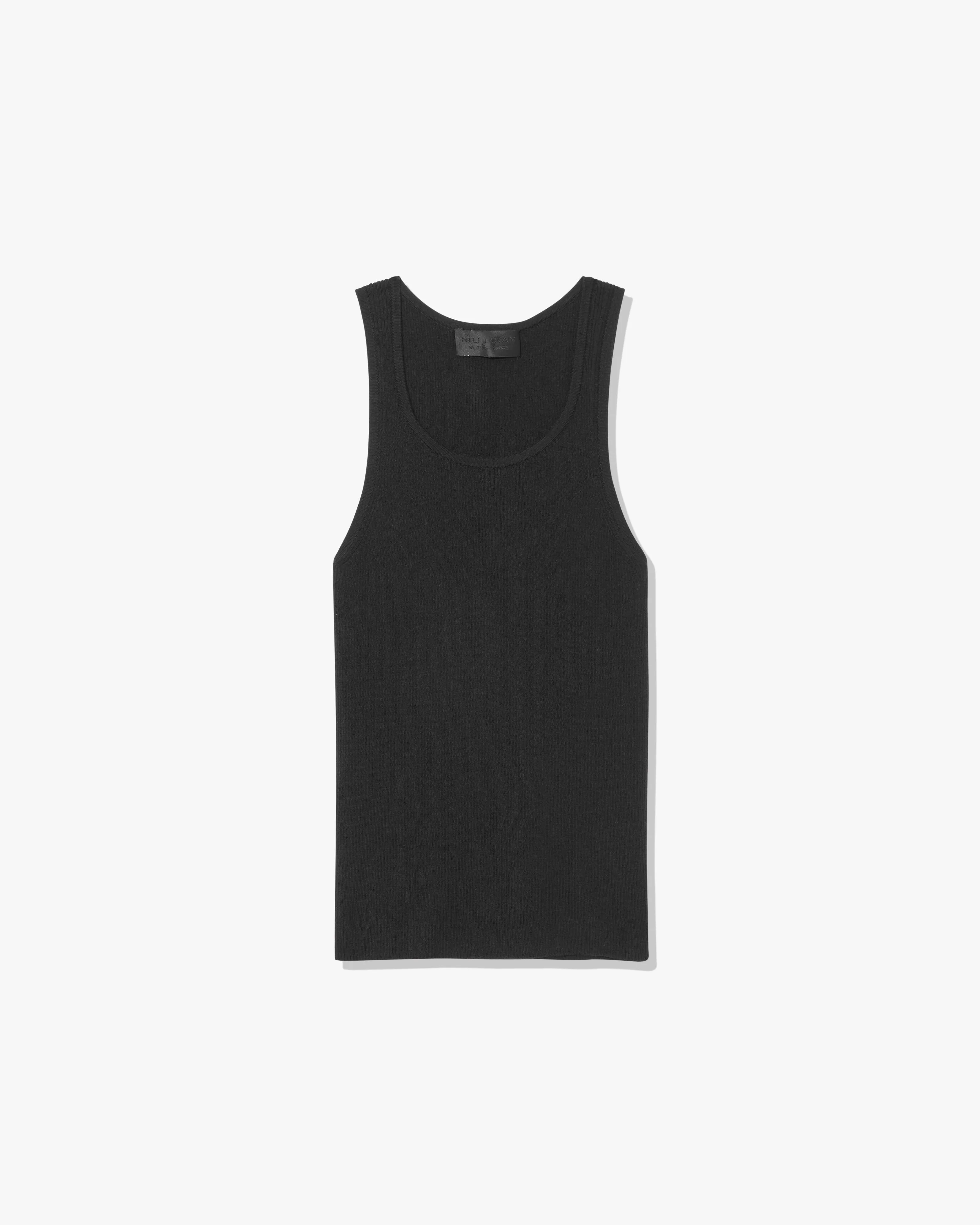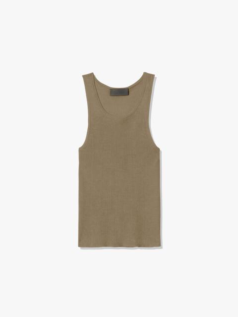 Fine gauge semi-sheer slim tank. Fully fashioned along neck and arm hole. SIZE & FIT Model is 5'11 and wears a size S. Model measurements are 31" bust, 25.5" waist, and 35" low hip. For exact measurements by size, view our size guide. COMPOSITION & CARE 100% SILK DRY CLEAN RECOMMENDED