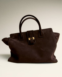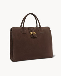 Top-handle bag in Italian suede. Semi-structured silhouette with a soft handfeel that collapses intentionally over time. Structured base. Interior back wall zip pocket. No exterior logo. Interior debossed NILI LOTAN NEW YORK “Made In” logo. Hardware includes logo zipper pullers at back wall pocket, custom-designed hardware at front, D-ring and dog clip closure at interior, and metal feet at base of bag. Expertly crafted in Italy by master artisans. Exterior leather is sourced from LWG-certified Italian tanneries, emphasizing sustainable practices. Interior suede is developed specifically for high-end lining. All hardware is nickel-free, hand-plated in a custom gold finish created exclusively for Nili Lotan. Dimensions (Inches): 12” Height , 14” Length , 5.5” Depth , 5” Handle Drop , 15.5” Shoulder Drop