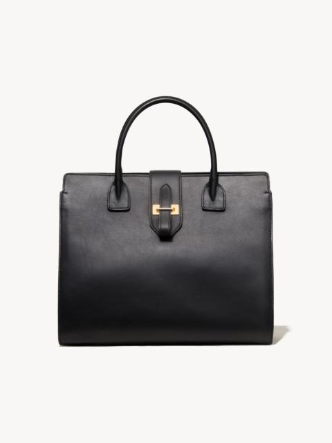 Top-handle bag in Italian suede. Semi-structured silhouette with a soft handfeel that collapses intentionally over time. Structured base. Removable interior strap allows for shoulder or crossbody wear. Removable interior pouch. Interior back wall zip pocket. No exterior logo. Interior debossed NILI LOTAN NEW YORK “Made In” logo. Hardware includes logo zipper pullers at back wall pocket and removable pouch, custom-designed hardware at front, D-ring and dog clip closure at interior, and metal feet at base of bag. Expertly crafted in Italy by master artisans. Exterior leather is sourced from LWG-certified Italian tanneries, emphasizing sustainable practices. Interior suede is developed specifically for high-end lining. All hardware is nickel-free, hand-plated in a custom gold finish created exclusively for Nili Lotan. Dimensions (Inches): 12” Height , 14” Length , 5.5” Depth , 5” Handle Drop , 15.5” Shoulder Drop - Italian Suede - Professional leather care only