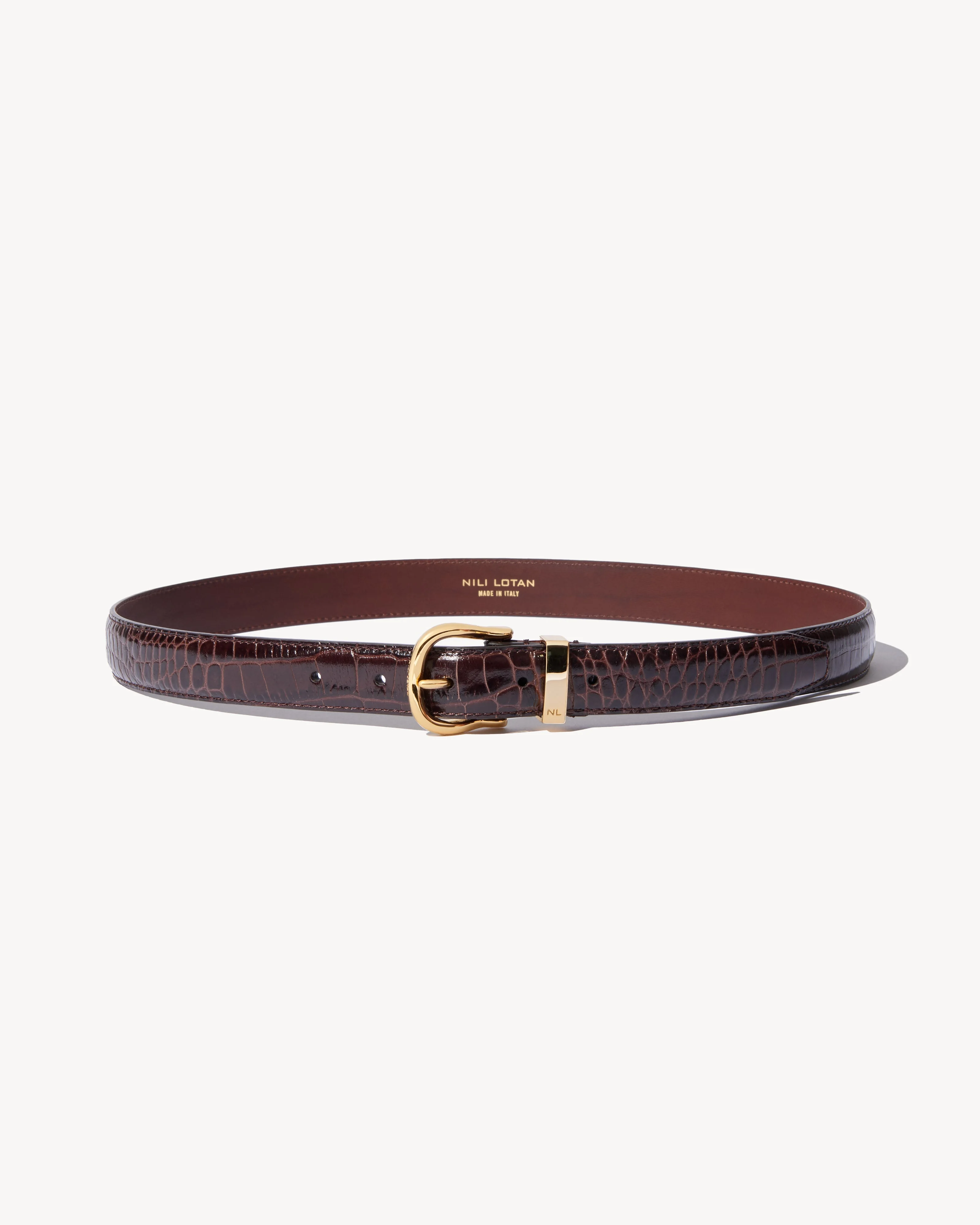 Designed with the modern women in mind. Pair with either your favorite pair of denim jeans or dress pants, the elevated ease and versatility of the Louise belt makes it the perfect accessory to pull together just about any look. Croc embossed calfskin, made in Italy. COMPOSITION & CARE 100% Calfskin Leather Professional leather care only