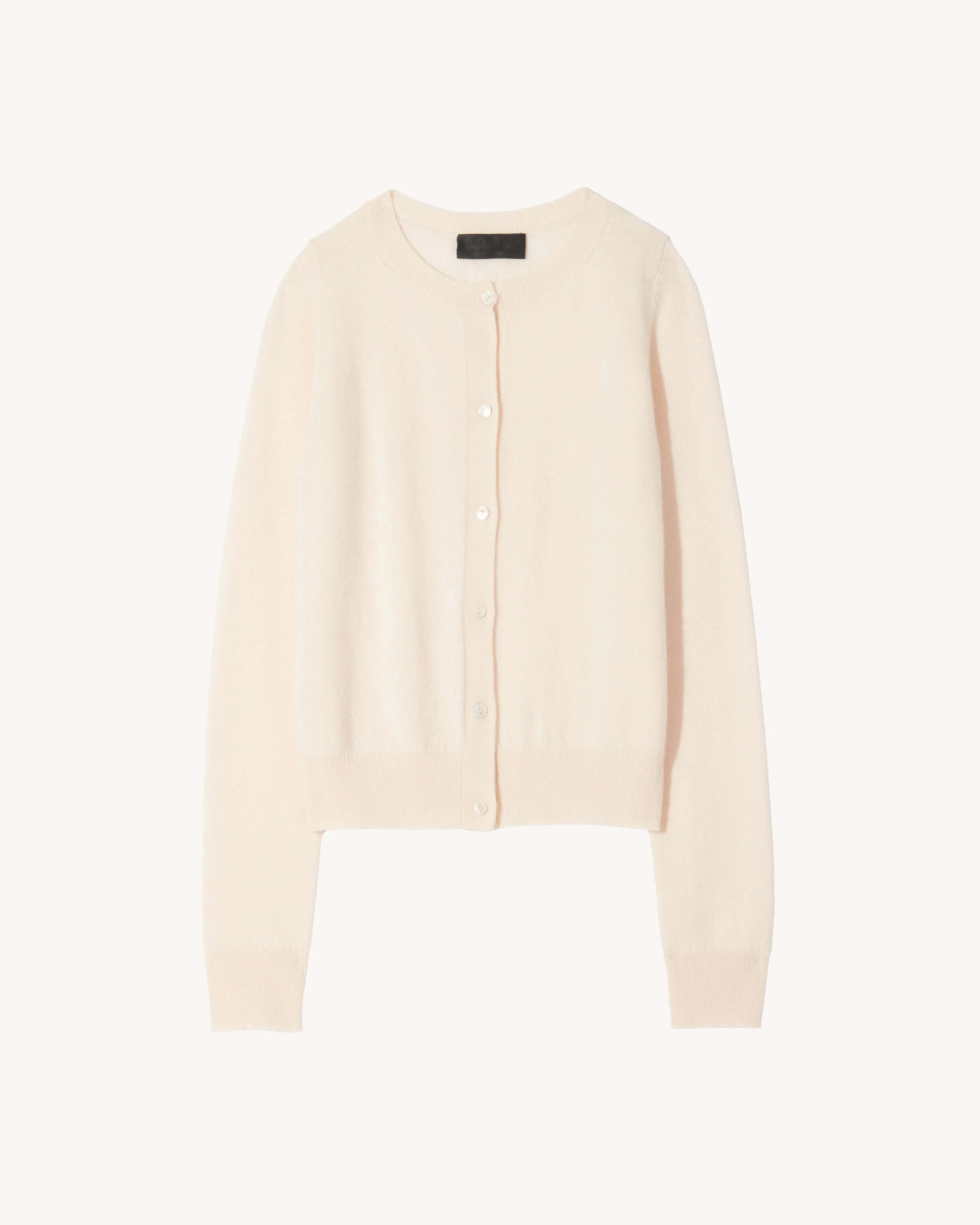 Light to medium weight cardigan. Six button center front closure. Fully fashioned along neck, sleeve and arm hole. Center back signature cableknit detail. SIZE & FIT Model is 5'11 and wears a size S. Size S measures approximately 19.5" front body length, 32 1/2" chest circumference, 26" hem circumference, 23.75" sleeve length from shoulder. COMPOSITION & CARE 100% CASHMERE DRY CLEAN RECOMMENDED