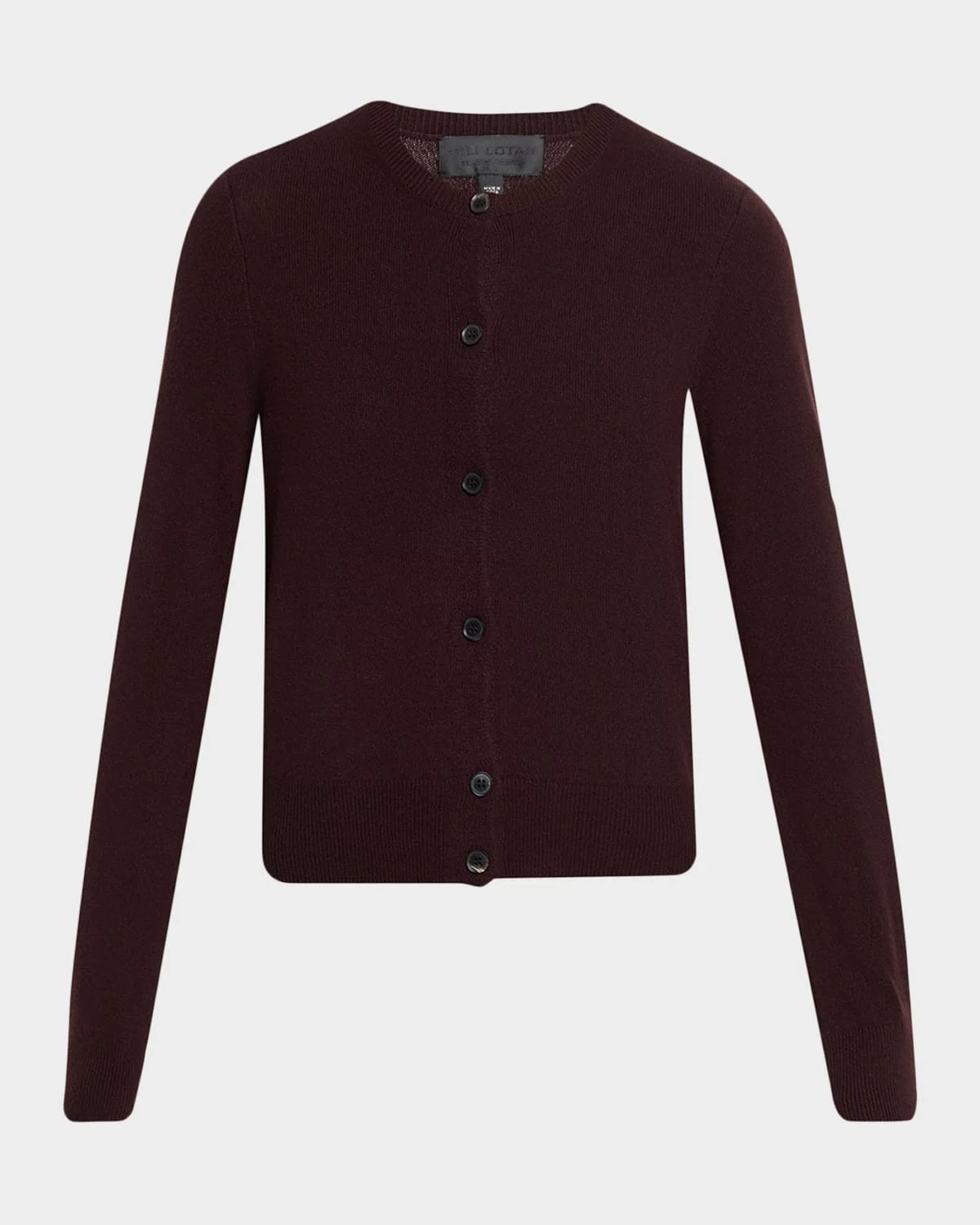 Nili Lotan "March" knit cardigan Crew neckline; button front Long sleeves Relaxed fit Ribbed cuffs and hem Cashmere Dry clean Made in Canada