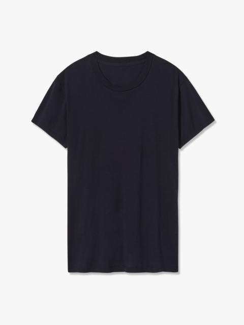 Slim crewneck tee. Higher collar. Smaller neck opening. Vintage pitched sleeve. Made in USA SIZE & FIT Model is 5'11 with 31" bust, 25.2" waist, and 35" low waist. Model wears size S. COMPOSITION & CARE 100% COTTON, MADE IN USA MACHINE WASH COLD TUMBLE DRY LOW LOW IRON