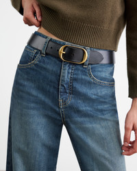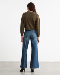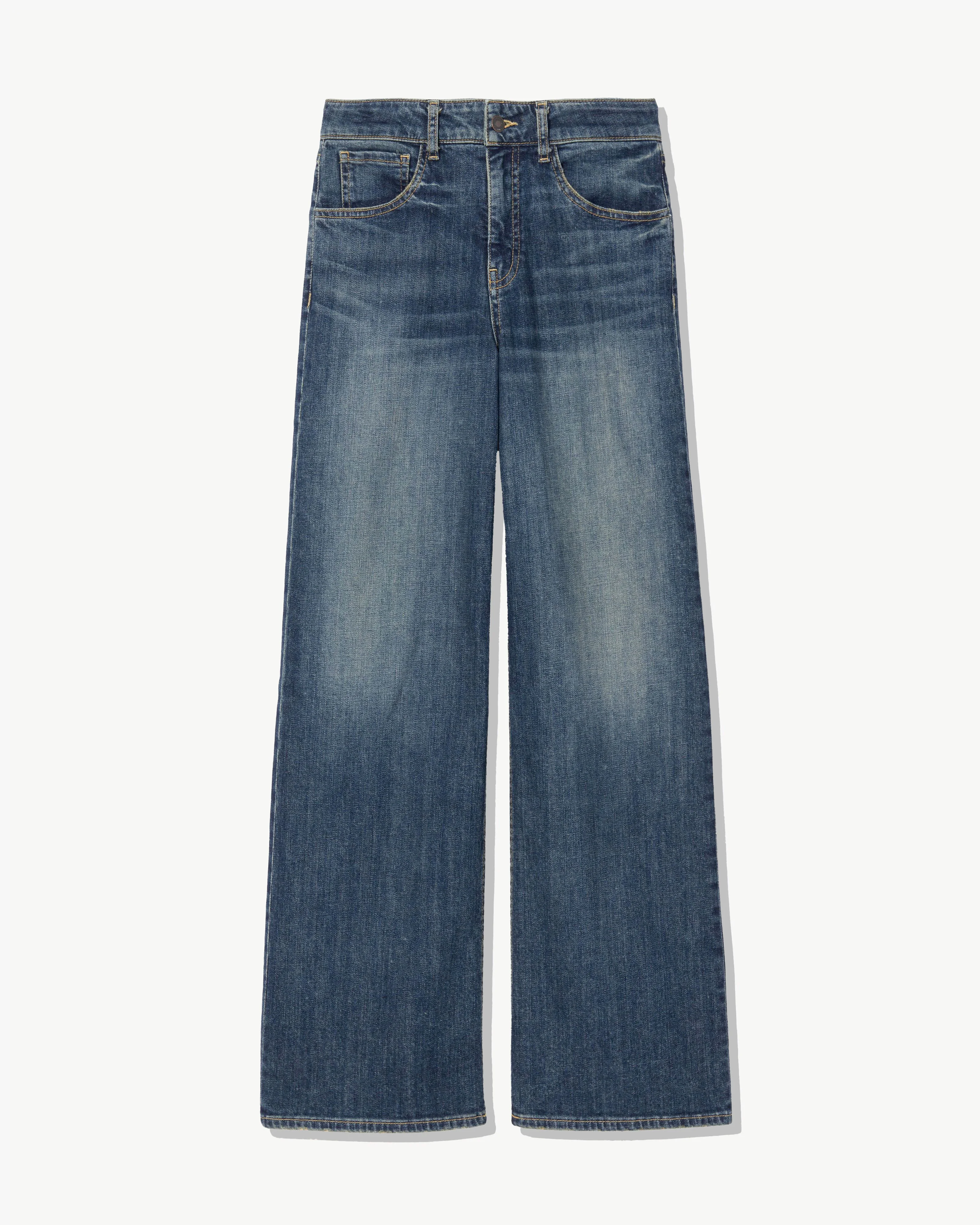 Mid-rise wide leg jean in Japanese stretch denim. Cropped ankle length. Five pocket details. Zip fly. Shank closure. Side seam. Belt loops. Made in USA COMPOSITION & CARE 98% COTTON 2% POLYURETHANE DO NOT BLEACH MACHINE WASH COLD TUMBLE DRY LOW DO NOT DRY CLEAN
