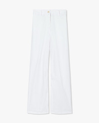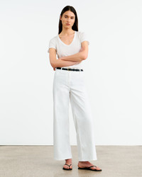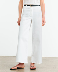High-rise wide-leg pant in soft brushed stretch twill. Fitted through waist and hip, opens to easy leg. Shorter inseam, hits at ankle. Zip fly and button closure. Clean flat front, with no pockets. Back patch pockets. Made in USA SIZE & FIT Model is 5'11 and wears a size 4. For exact measurements by size, view our size guide. COMPOSITION & CARE 98% COTTON, 2% ELASTANE MACHINE WASH COLD DO NOT BLEACH TUMBLE DRY LOW LOW IRON
