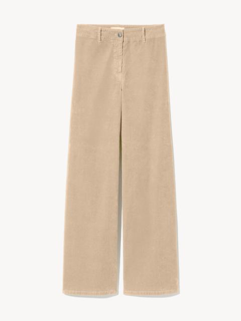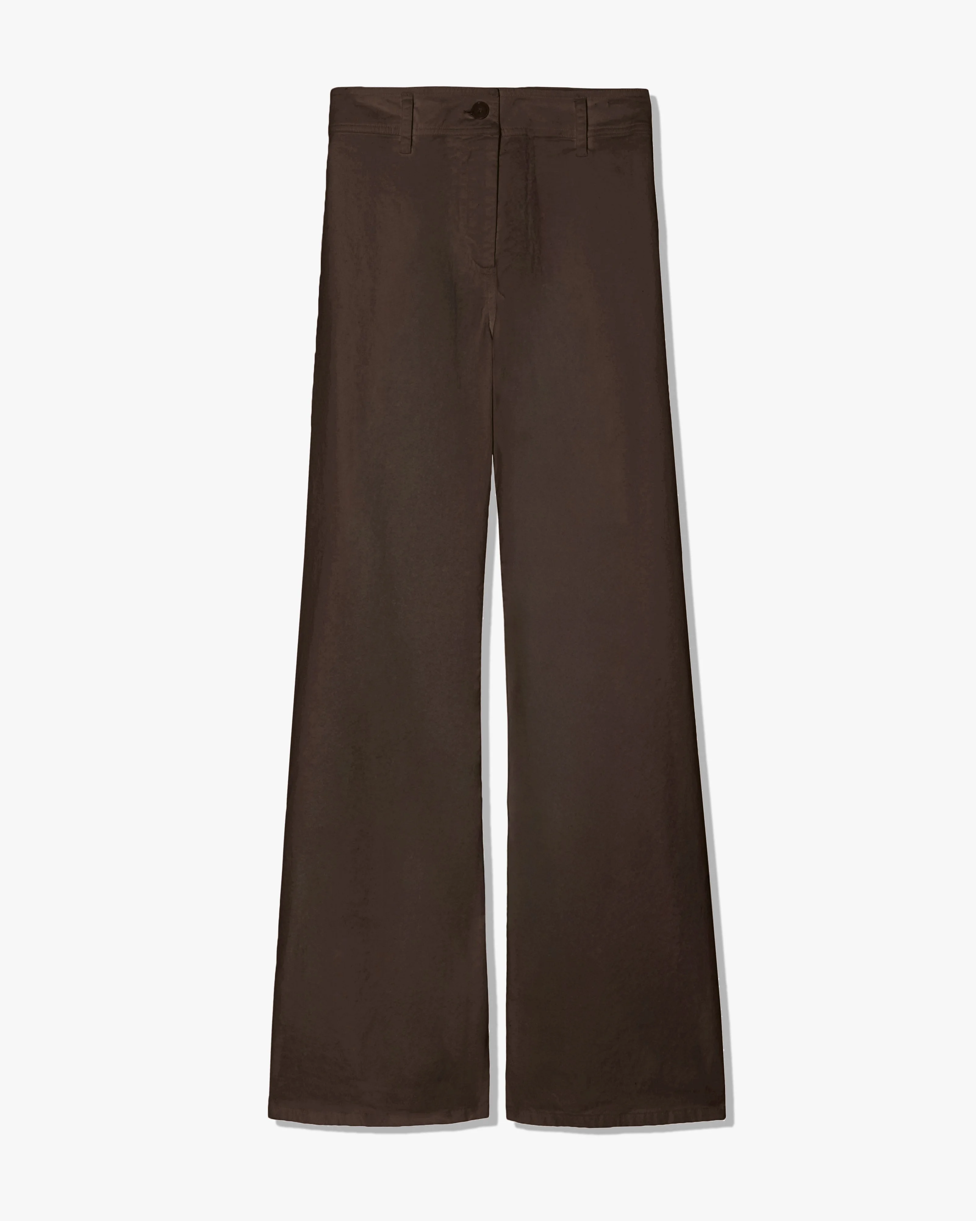 Mid-rise cropped wide leg pant. Fitted through waist and hips. Cropped ankle length. Opens to a relaxed leg. No front pockets. No outer side seam. Zip fly. Logo horn button closure. Back patch pockets. Designed for a 29.5" inseam. - Made in USA - 98% Cotton, 2% Elastane - Machine wash cold - Do not bleach - Tumble dry low - Low iron
