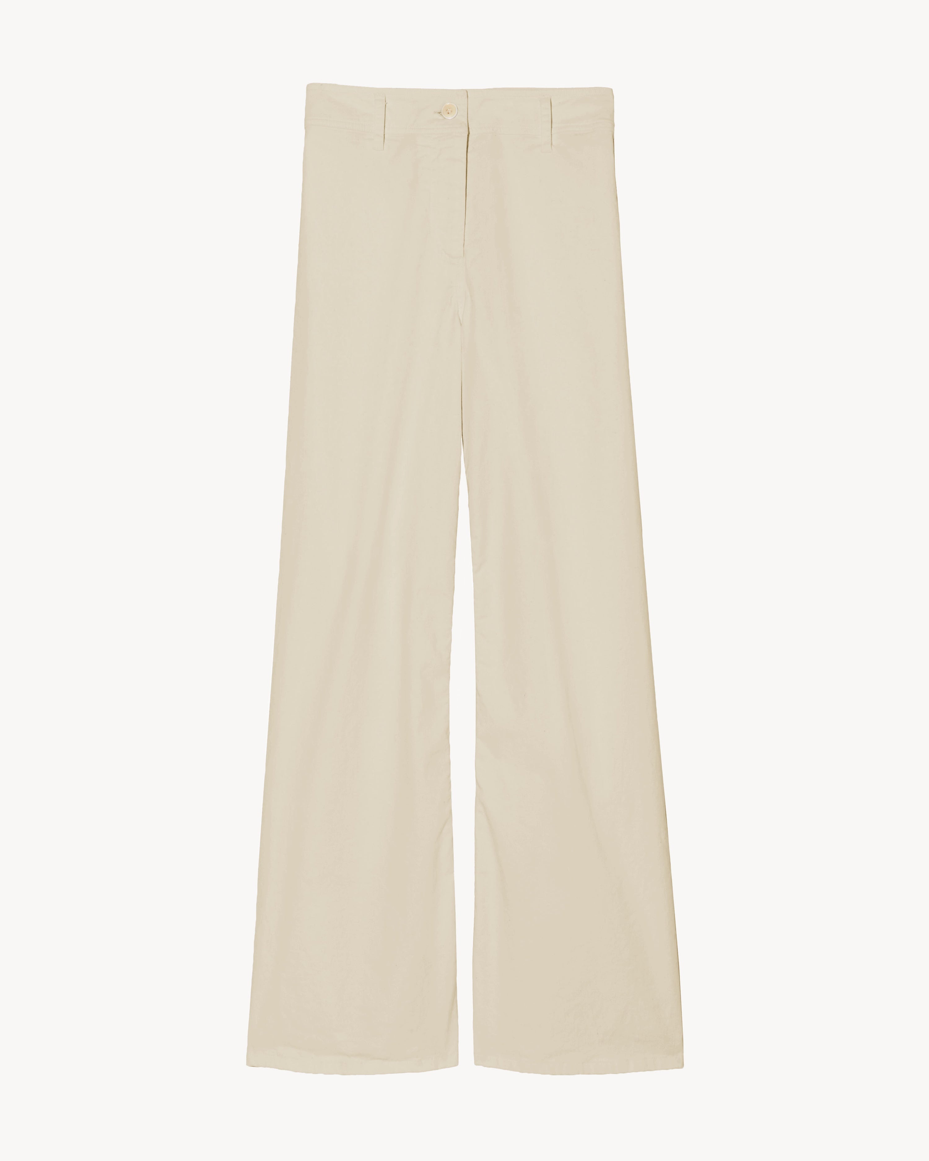 <!--td {border: 1px solid #cccccc;}br {mso-data-placement:same-cell;}--> High-rise, wide leg ankle length pant in brushed stretch twill cotton. Fitted through waist and hip, opens to easy leg. Zip fly. Logo horn button closure. Back patch pockets. Made in USA COMPOSITION & CARE 98% COTTON, 2% ELASTANE MACHINE WASH COLD DO NOT BLEACH TUMBLE DRY LOW LOW IRON