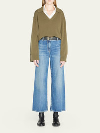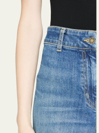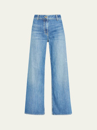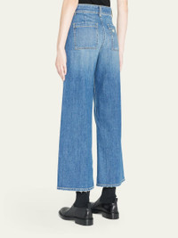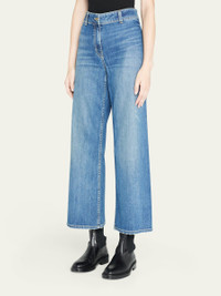 Nili Lotan "Megan" stretchdenim pants High rise Flat front Back patch pockets Wide legs Cropped at the ankle Button/zip fly; belt loops Cotton/polyurethane Made in USA