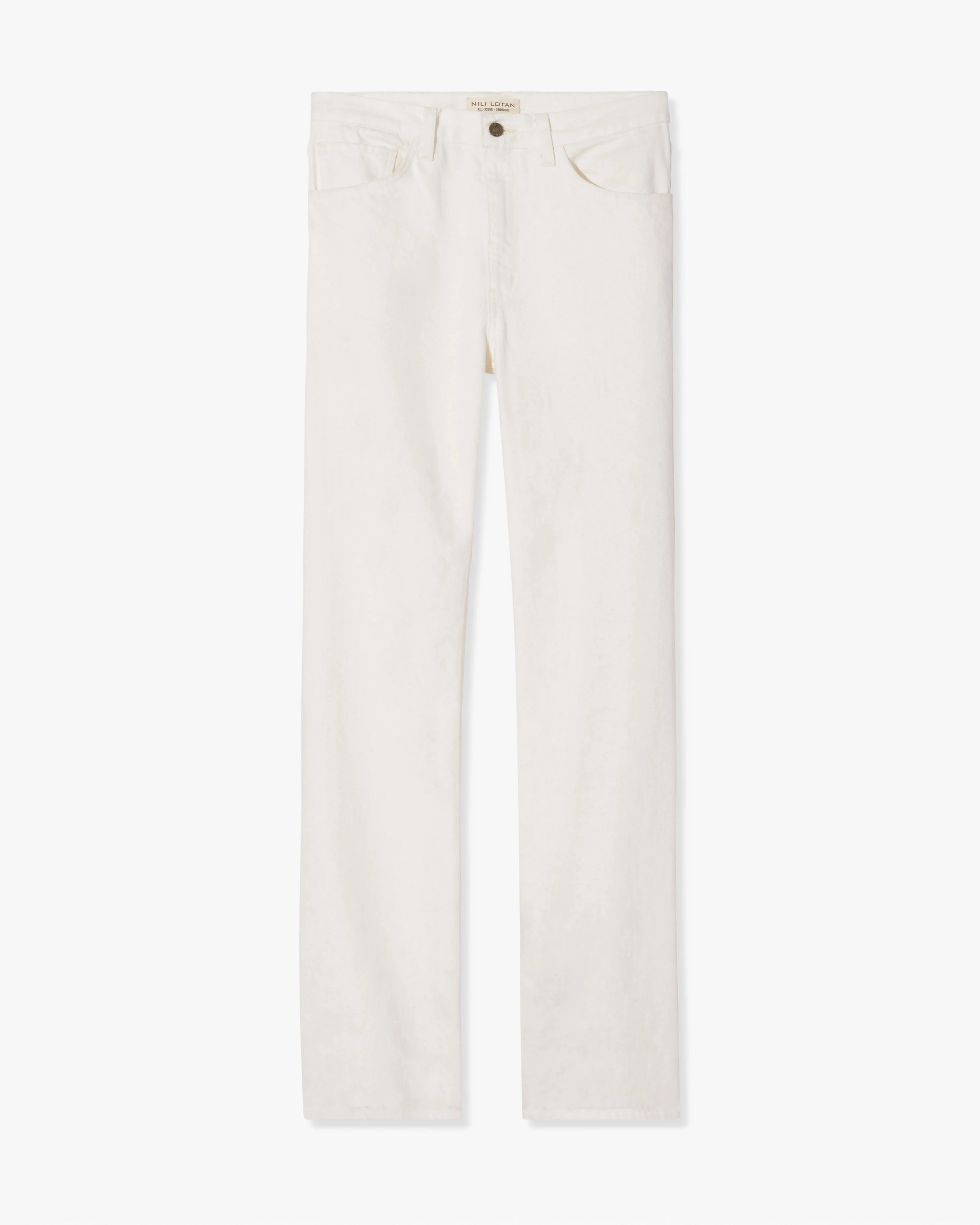 Non-stretch low-rise, relaxed leg jean. Made in USA SIZE & FIT Model is 5'11 and wears a size 26. Model measurements are 32.5" bust, 26" waist, and 36" low hip. For exact measurements by size, view our size guide. COMPOSITION & CARE 100% COTTON, MADE IN USA MACHINE WASH COLD LOW IRON DRY CLEAN RECOMMENDED