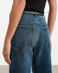 Mid-rise relaxed leg jean in non-stretch Japanese heavyweight crosshatch denim. Five pocket details. Zip fly. Shank closure. Belt loops. Designed for a 32" inseam—tailor for a personalized fit. Made in USA COMPOSITION & CARE 100% Cotton Machine wash cold Low iron Dry clean recommended