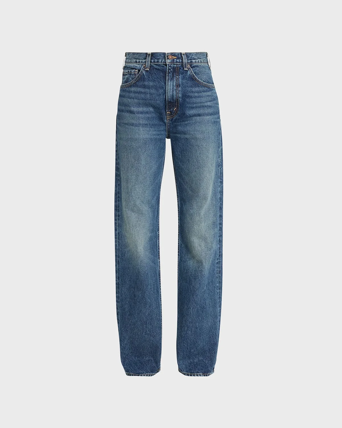 - Nili Lotan "Mitchell" jeans - High rise - Five-pocket style - Straight legs - Full length - Button/zip fly; belt loops - Cotton - Made in USA