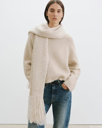 Chunky 3-gauge cashmere-silk scarf featuring tonal tuck stitching and hand-applied tonal fringe in self yarn using two coordinating colors. 13.25" x 72" - 90% Cashmere 10% Silk - Dry clean only