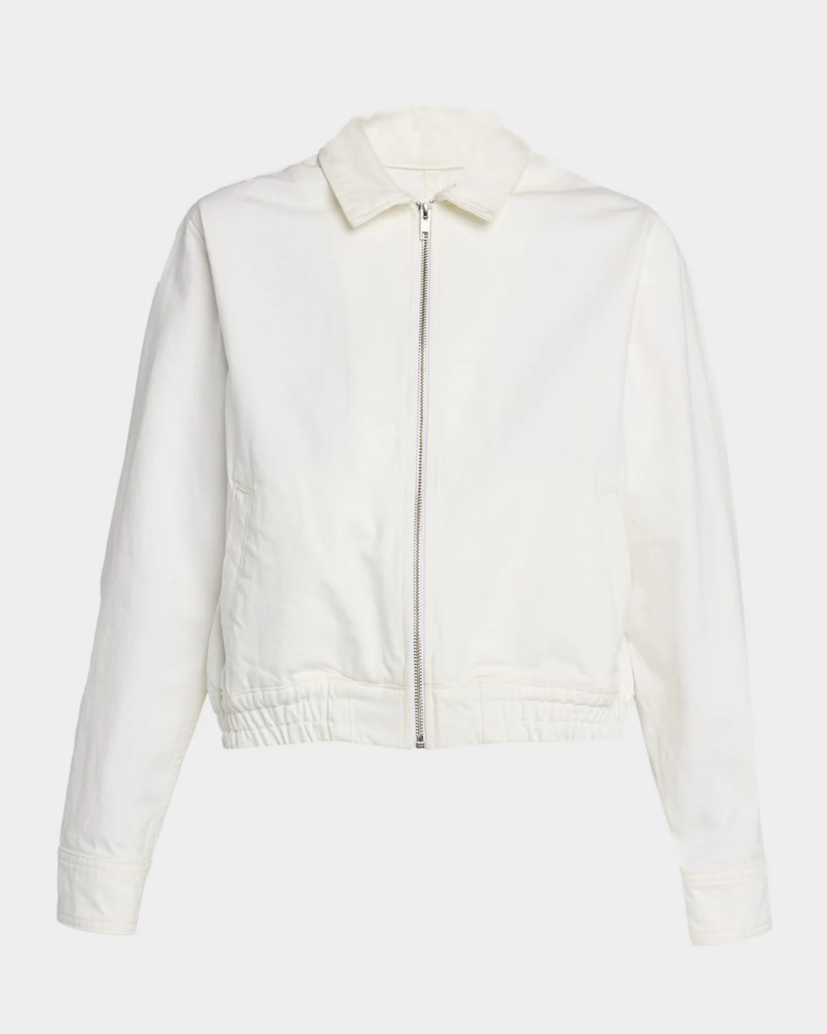 Nili Lotan's "Najac" jacket is fashioned from rigid, non-stretch denim, featuring a stark optic-white wash that brings a clean, modernist edge to the classic, structured silhouette Shirt collar; zip front Long sleeves; button cuffs Side-entry pockets Relaxed fit Cropped length Cotton Machine wash cold Made in USA SIZE & FITModel measurements: 5 & apos;10" tallModel is wearing a US size 4/Small