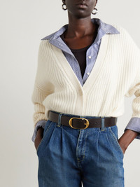 Nili Lotan's belt is the perfect finishing touch for a variety of outfits. It's made from smooth dark-brown leather and fastens with a burnished gold-tone buckle. Loop yours through a pair of jeans or layer it over a blazer. Size & Fit - Designed to be worn on the hips or waist - Measurements can be found in the link below Details & Care - Dark-brown leather (Calf) - Buckle fastening