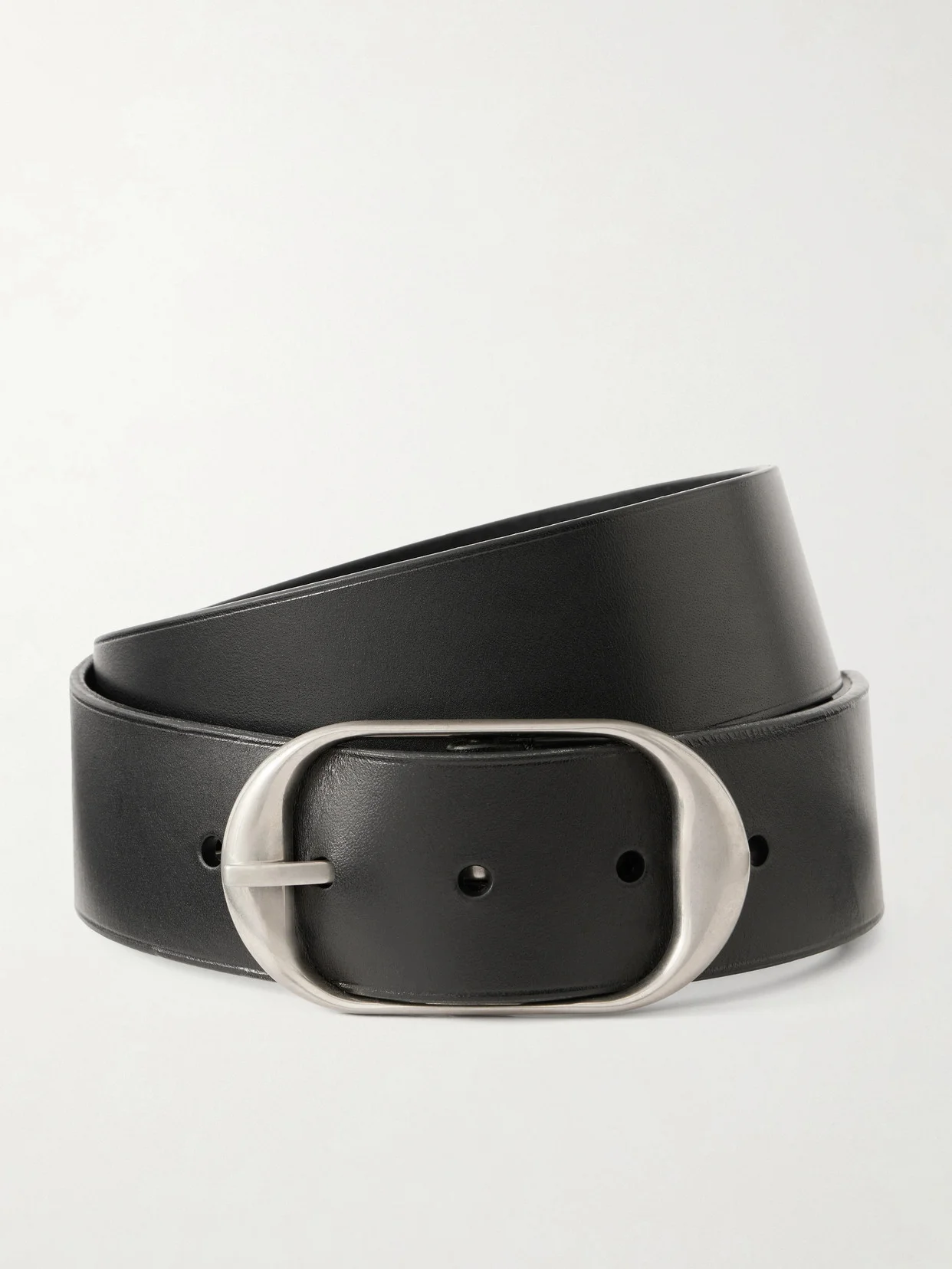 Nili Lotan's belt is the perfect finishing touch for a variety of outfits. It's made from smooth black leather and fastens with a burnished gold-tone buckle. Loop yours through a pair of jeans or layer it over a blazer.