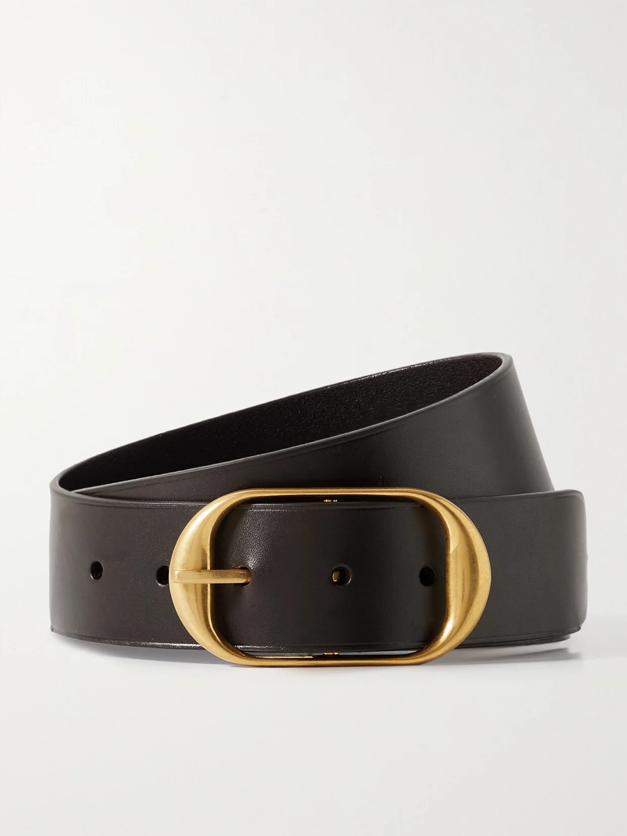 Nili Lotan's belt is the perfect finishing touch for a variety of outfits. It's made from smooth dark-brown leather and fastens with a burnished gold-tone buckle. Loop yours through a pair of jeans or layer it over a blazer.