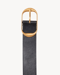 A wide-style belt, inspired by Nili’s personal favorite vintage belt. Italian vachetta, solid brass buckle with a matte gold finish. Contoured to fit beautifully around the natural shape of the waist. Made in Italy. SIZE & FIT Measurements are in CM. Size is determined by measuring from center bar of buckle to the third hole. Total width of belt is 4cm. Size 75: 75cm to 3rd hole, total length is 90cm Total Length: 35" Size 80: 80cm to 3rd hole, total length is 95cm Total Length: 37" Size 85: 85cm to 3rd hole, total length is 100 cm Total Length: 39' Size 90: 90cm to 3rd hole, total length is 105 cm Total Length: 41" COMPOSITION & CARE 100% Calfskin Leather / Made in Italy. PROFESSIONAL LEATHER CARE ONLY