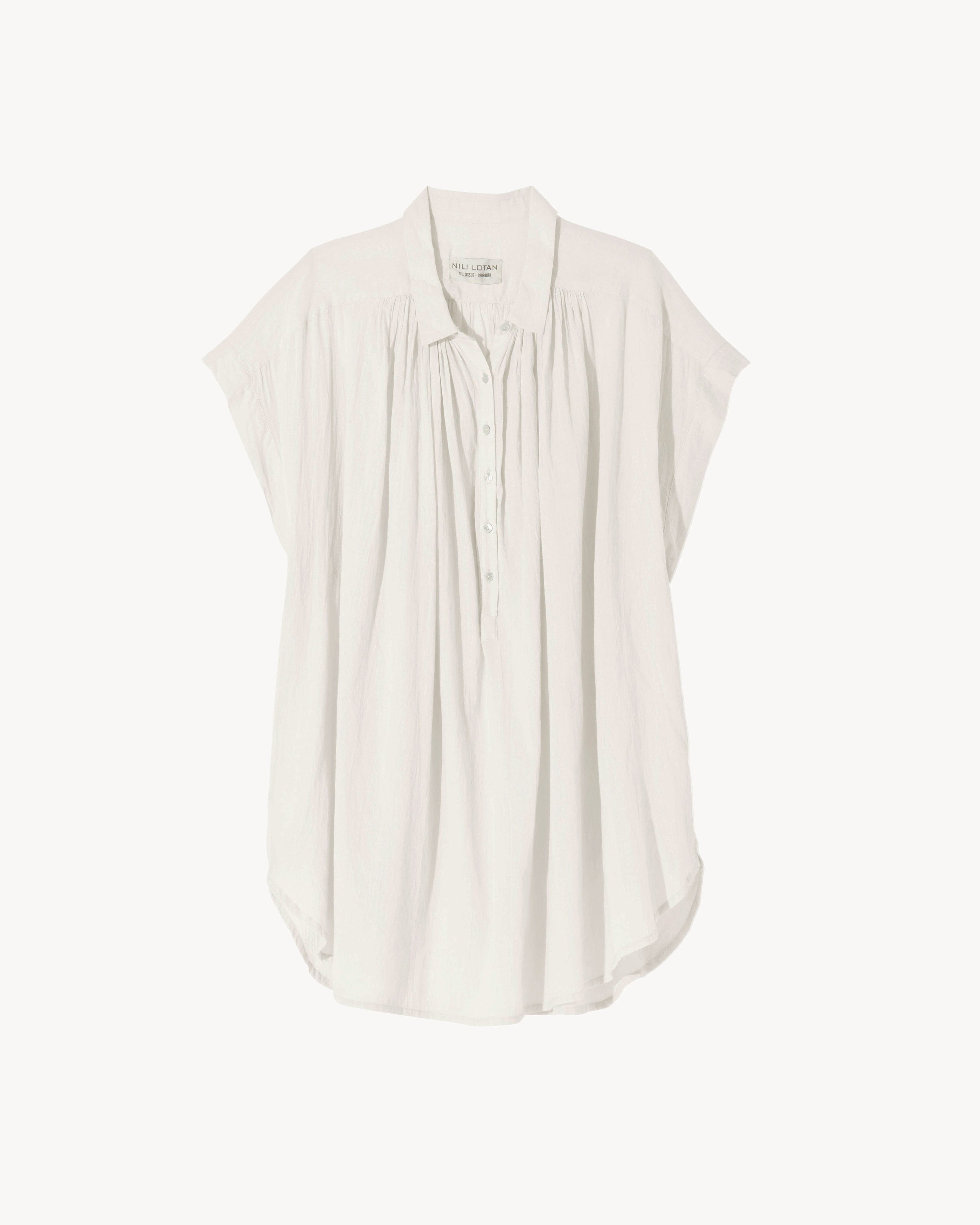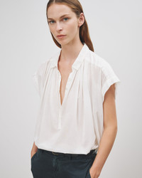 Airy cotton voile gives the Normandy Blouse its effortless appeal. Short sleeves and shirring at the shoulders enhance the feeling of flow, with delicate troca buttons at the placket. Pair with your favorite denim for a relaxed daytime look. SIZE & FIT Model is 5'11 and wears a size S. For exact measurements by size, view our size guide. COMPOSITION & CARE 100% COTTON, IMPORTED GENTLE WASH CYCLE TUMBLE DRY LOW LOW IRON DRY CLEAN RECOMMENDED