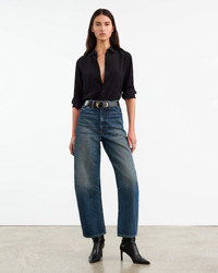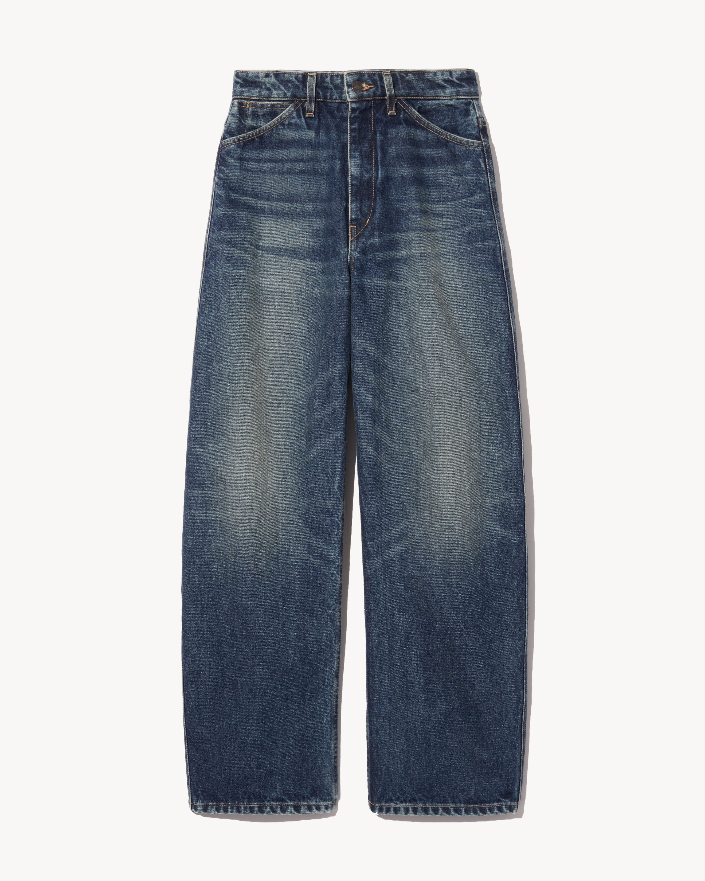 High-rise, relaxed fit jean in Japanese nonstretch denim. Curved silhouette. Zip fly. Shank closure. Back top stitched patch pockets. Belt loops. Made in USA COMPOSITION & CARE 100% COTTON MACHINE WASH COLD DO NOT BLEACH TUMBLE DRY LOW MEDIUM IRON DO NOT DRY CLEAN