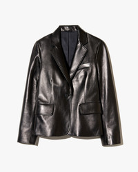 Shrunken, cropped jacket. Bracelet-length sleeves. Single horn button at front and cuffs with besom buttonhole at lapel. Soft shoulder pads and sleeve heads. Darts for shape and back vent. Fully lined with interior pocket. - 100% Lambskin Leather - Professional leather care only