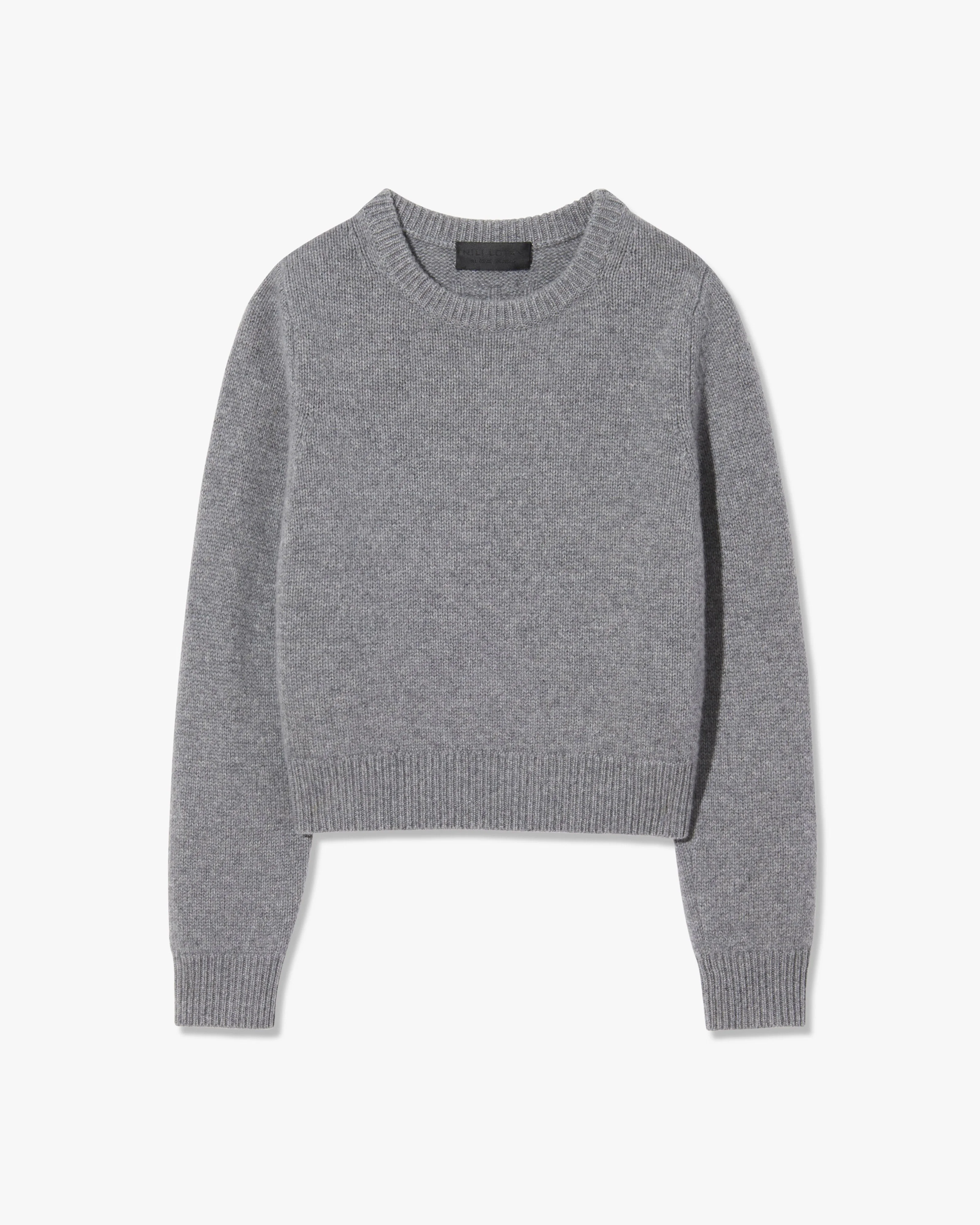 Medium weight, boxy sweater. Standard length sleeve. Double layer rib along neck. Fully fashioned. SIZE & FIT Model is 5'11 with 32.5" bust, 25.5" waist, and 35" low hip. Model wears size S. Size S measures approximately 18 7/8" front body length, 19 1/4" chest width, 22 1/2" sleeve length from shoulder. COMPOSITION & CARE 100% CASHMERE DRY CLEAN RECOMMENDED