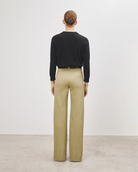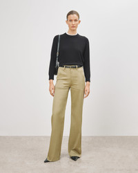 Super high-rise, straight leg pant. Front patch pockets. Carpenter tabs. Back patch pockets. Hammer loop. Centerfront zip and button closure. Made in USA SIZE & FIT Model is 5'11 with 32.5" bust, 25.5" waist, and 35" low hip. Model wears size 0. For exact measurements by size, view our size guide. COMPOSITION & CARE 100% COTTON, MADE IN USA DO NOT BLEACH DO NOT TUMBLE DRY LOW IRON DRY CLEAN