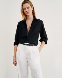 Classic fit button up shirt. Front placket. Standard cuff and sleeve plackets. Not oversized. Made in USA SIZE & FIT Model wears size S. For exact measurements by size, view our size guide. COMPOSITION & CARE 100% COTTON MACHINE WASH COLD GENTLE WASH CYCLE DO NOT BLEACH DO NOT TUMBLE DRY LOW IRON DRY CLEAN RECOMMENDED