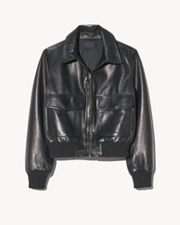 Shrunken fit jacket in leather. Patch front pocket with flaps. Dual entry pockets. Small shoulder. Hidden snap closure. Pointed collar. Rib trim at hem and sleeve. Blouson detail at back. COMPOSITION & CARE 100% Lambskin Leather Professional leather care only Spot clean only