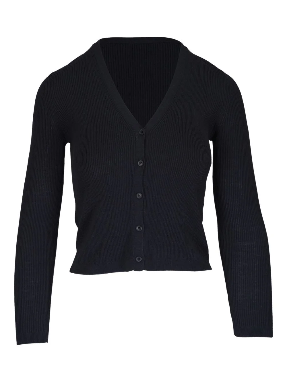 ribbed button cardigan Highlights - Black - Silk - Ribbed texture - V-neck - Button front Made in United States Composition Silk 100% Washing instructions Read Manufacturer Guidelines