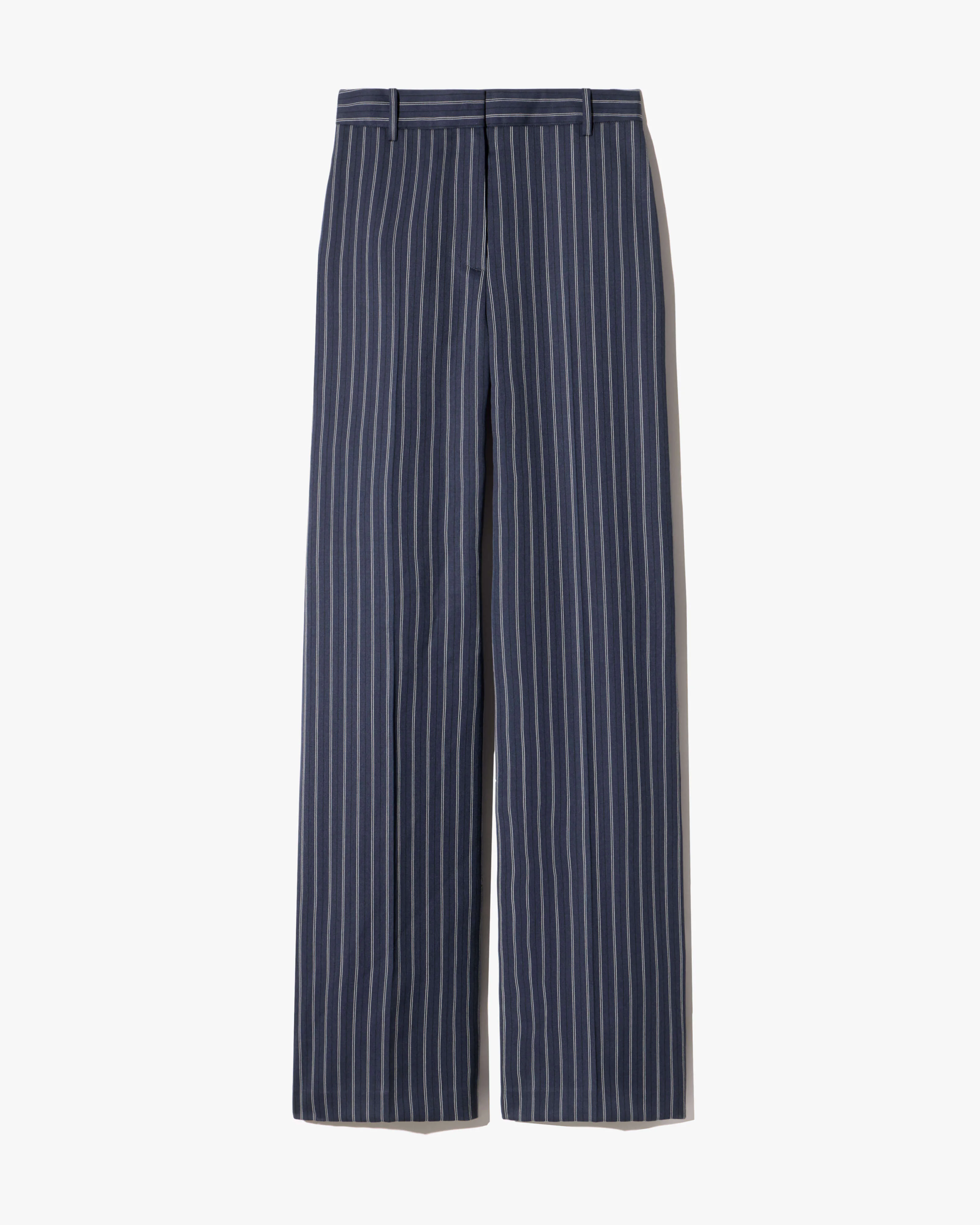 High-rise pant. Relaxed through the thigh and hip. Belt loops at waistband. Back welt pockets.