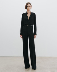 High-rise pant relaxed through the thigh and hip. Belt loops at waistband. Back welt pockets. Designed for a 35" inseam. - Made in USA - 100% Virgin Wool - Dry clean only - Gentle steaming - Hard press on medium with press cloth