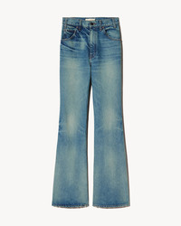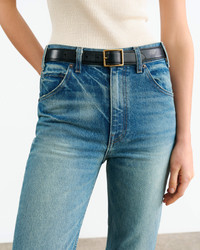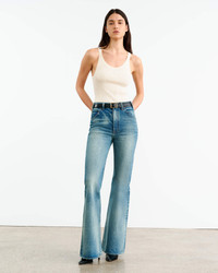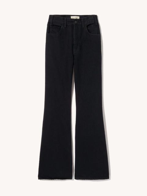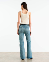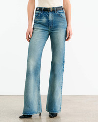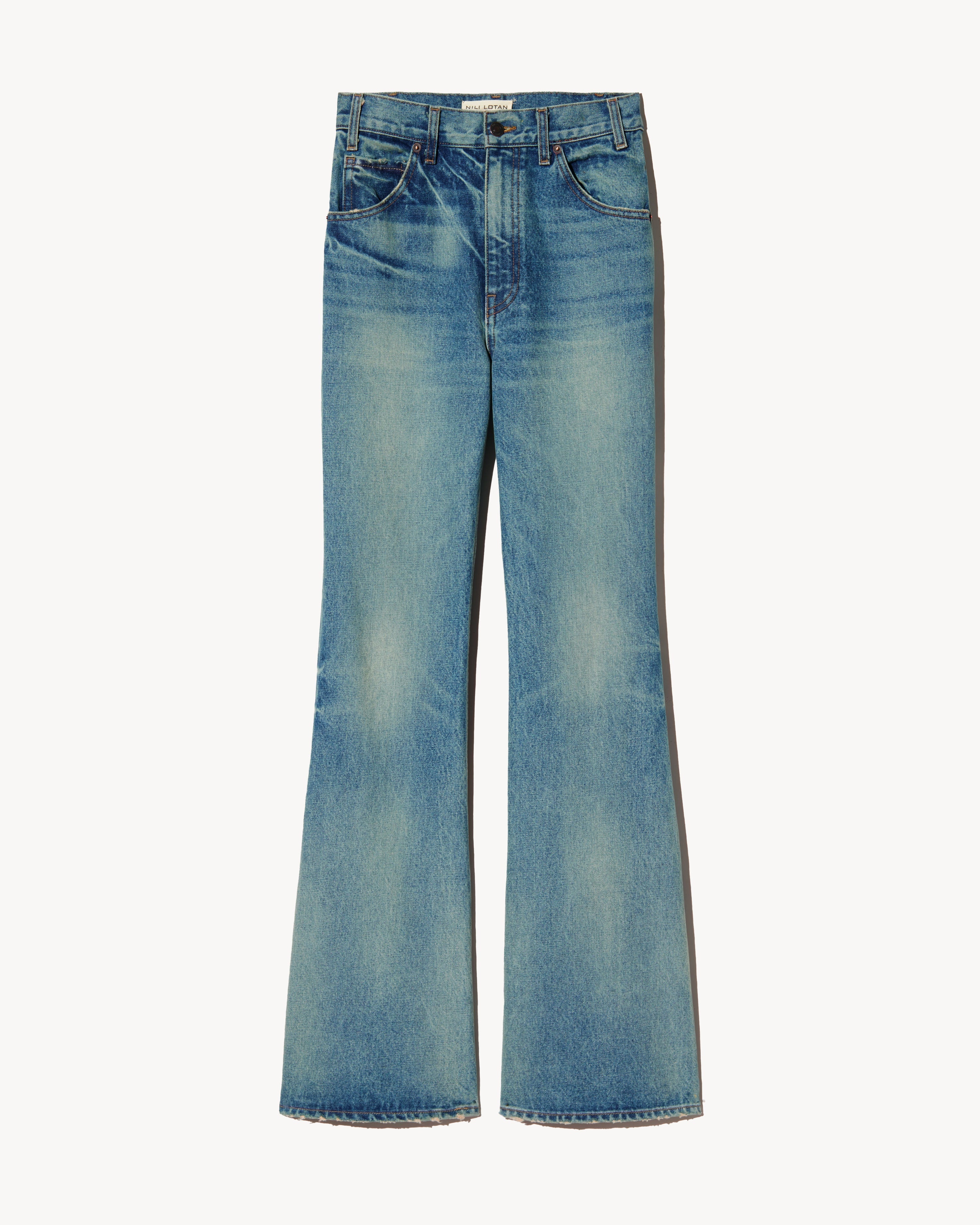 Mid-rise flare leg jean in Japanese non-stretch denim. Fitted through hips. Opens to a flare leg. Zip fly. Shank closure. Five pocket detail. Belt loops. Designed for a 34" inseam—tailor for a personalized fit. Made in USA COMPOSITION & CARE 100% COTTON Do not bleach Tumble dry low Medium iron Do not dry clean Machine wash cold