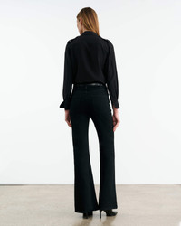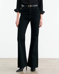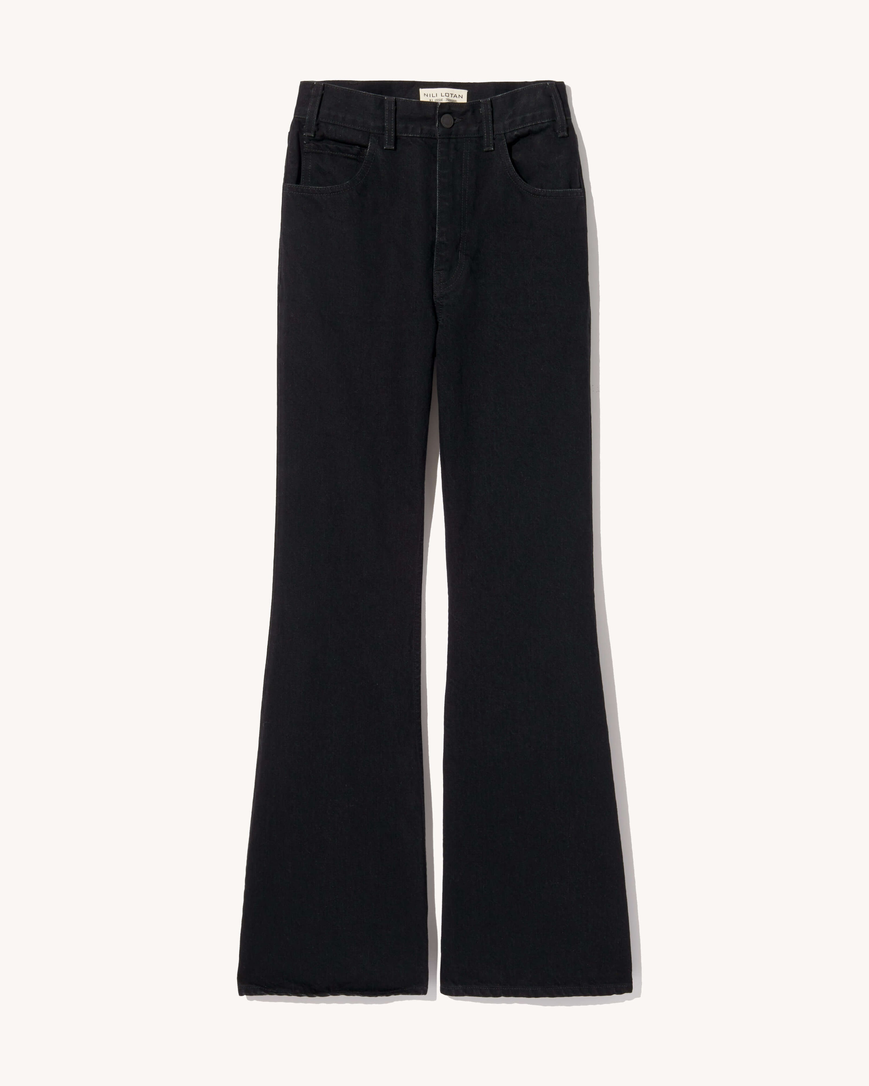 Mid-rise flare leg jean in Japanese denim. Fitted through hips. Opens to a flare leg. Zip fly. Shank closure. Five pocket detail. Belt loops. Designed for a 34" inseam—tailor for a personalized fit. Made in USA COMPOSITION & CARE 100% COTTON Machine wash cold Tumble dry low Medium iron Do not bleach Do not dry clean