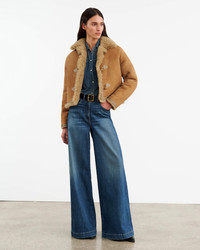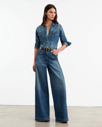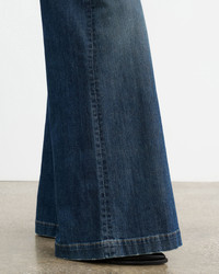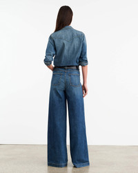 Mid-rise relaxed super wide leg jean in Japanese denim. Five pocket detail. Zip fly. Shank closure. Belt loops. Made in USA COMPOSITION & CARE 98% COTTON 2% POLYURETHANE DO NOT BLEACH TUMBLE DRY LOW MEDIUM IRON DO NOT DRY CLEAN MACHINE WASH COLD