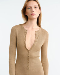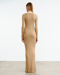 Slim full length light weight rib long sleeve dress in Italian silk. Center front placket with buttons. Double rib at trim. Natural stretch. COMPOSITION & CARE 100% Silk Dry clean recommended