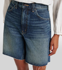 The Russel shorts from Nili Lotan are crafted from denim in a relaxed, high-rise silhouette. The design features frayed edges, belt loops, and five pockets - ideal for a casual-but-sophisticated look. Product Details - Material: 100% cotton - Care instructions: machine wash cold - Made in the USA - Designer color name: Simon Wash - Item color: blue - Closure: zip and button fastening - Pockets: five pockets - Belt loops - Frayed edges - Item number: P01062396 Size & Fit - True to size - Non-stretchy fabric - Straight leg - Mid-rise - The model seen in the picture is 178cm-5'10" and wearing a size 26