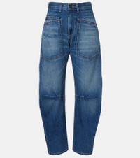 Invest in Nili Lotan's timeless wardrobe staples – where impeccable fit meets sophisticated design. Made from cotton denim, the Shon jeans are shaped to a barrel-leg silhouette with patch pockets at the front. Product Details - Material: 100% cotton - Care instructions: machine wash - Made in the USA - Color: blue - Designer color name: Bedford Wash - Closure: zipper fly, button fastening - Pockets: patch pockets - Item number: P01124525 Size & Fit - True to size - Non-stretchy fabric - Tapered leg - High-rise - The model seen in the picture is 178cm-5'10" and wearing a size 26