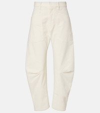 Invest in Nili Lotan's timeless wardrobe staples – where impeccable fit meets sophisticated design. Crafted from a cotton-blend corduroy, the Shon pants are shaped to a barrel-leg silhouette that tapers at the hem. Product Details - Material: 93% cotton, 6% polyester, 1% elastane - Care instructions: machine wash cold - Made in the USA - Color: white - Designer color name: Stone - Item color: white - Closure: zipper fly, button and hook fastenings - Pockets: five pockets - Item number: P01124513 Size & Fit - True to size - Non-stretchy fabric - Tapered leg - The model seen in the picture is 178cm-5'10" and wearing a size US 4