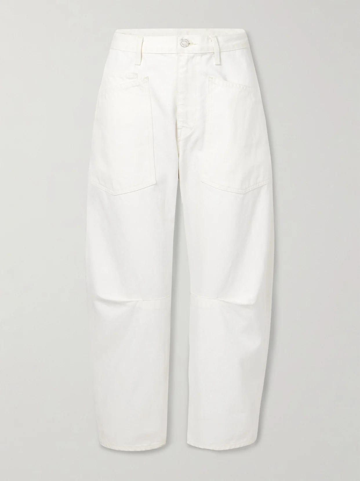 Nili Lotan's 'Shon' tapered pants are a utilitarian staple. Cut from cotton-blend twill, they have elongated cargo pockets and pleated knees for a slightly curved silhouette. Wear yours at the weekend with a tucked-in tee or sweater.
