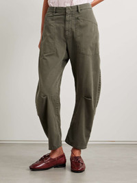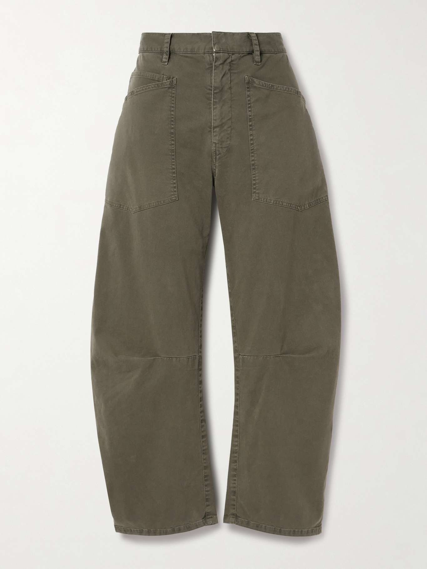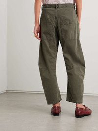 EDITORS'NOTES Nili Lotan's 'Shon' pants are a utilitarian staple. Cut from cotton-blend twill, they have elongated cargo pockets and pleated knees for a slightly curved silhouette. Wear yours at the weekend with a tucked-in tee or sweater. SIZE & FIT - Fits true to size, take your normal size - Mid-rise, cut for a relaxed fit, tapered at the hem - Mid-weight, slightly stretchy fabric - Model is 180cm/ 5'11" and is wearing a US 2 DETAILS & CARE - Army-green cotton-blend twill - Concealed hook, button and zip fastening at front - 98% cotton, 2% elastane - Designer color: Loden Large to size. See Size & Fit notes.