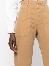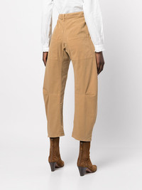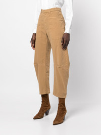 Shon cropped angular-leg trousers fawn brown cotton-blend stretch-cotton seam detailing tonal stitching high-waisted concealed front fastening belt loops four front patch pockets cropped leg Made in United States Composition Cotton 98%, Spandex/Elastane 2% SIZE & FIT Model measurements Height 5 ft 10 in(1.79 m) Bust/Chest 31.1 in(79 cm) Hips 33.85 in(86 cm) Waist 22.83 in(58 cm) Washing instructions Machine Wash