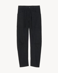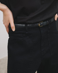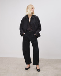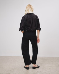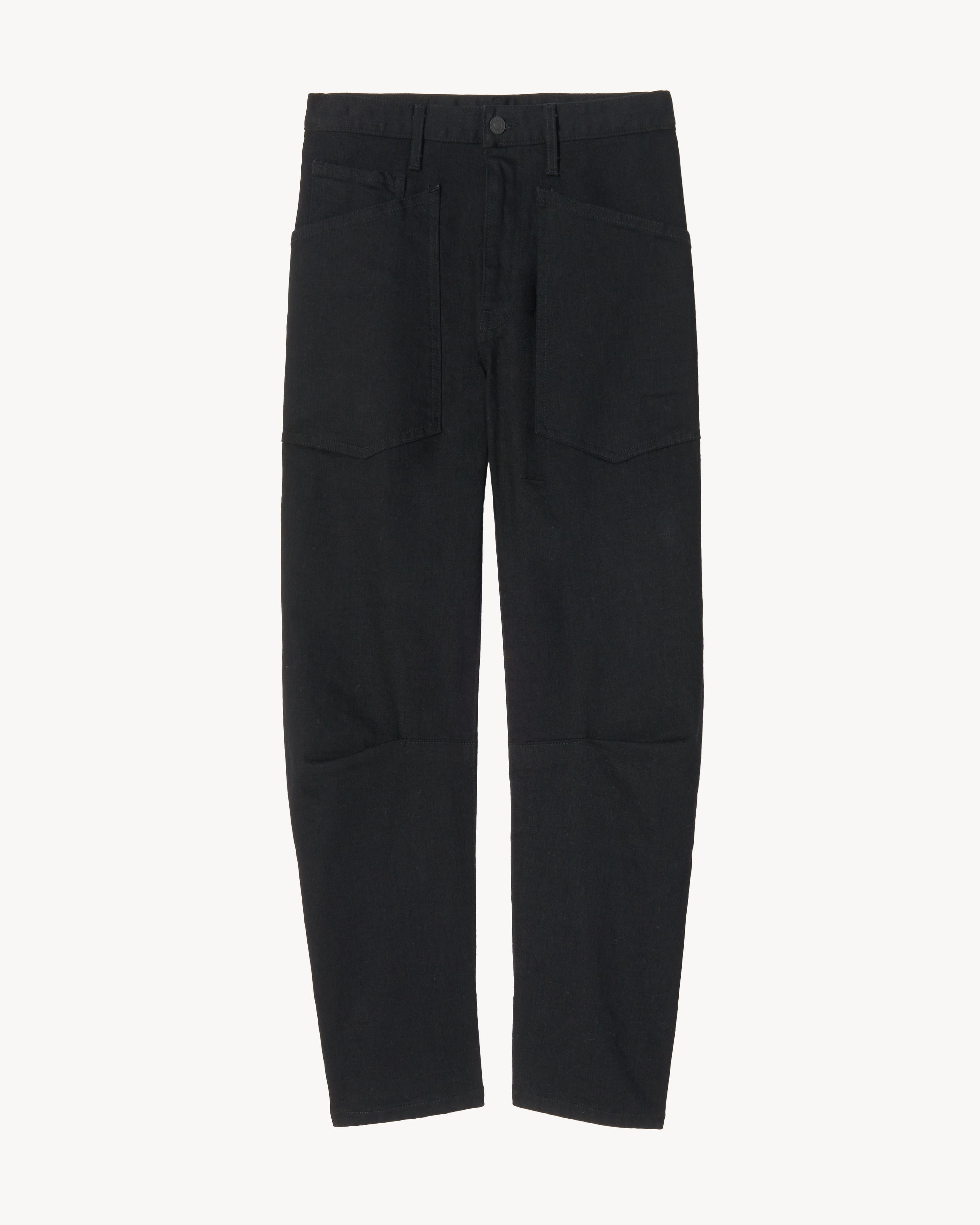 Mid-rise relaxed-fit jean in stretch denim. Uniquely curved silhouette. Easy, gently tapered legs. Seam detail at knees. Zip fly and button-front closure. Top-stitched front and back patch pockets. Fabric is premium Japanese denim and is made in Los Angeles. Made in USA SIZE & FIT Model is 5'11 and wears a size 26. For exact measurements by size, view our size guide. COMPOSITION & CARE 98%COTTON 2%POLYURETHANE, MADE IN USA OF IMPORTED FABRIC MACHINE WASH COLD DO NOT BLEACH TUMBLE DRY LOW LOW IRON DRY CLEAN