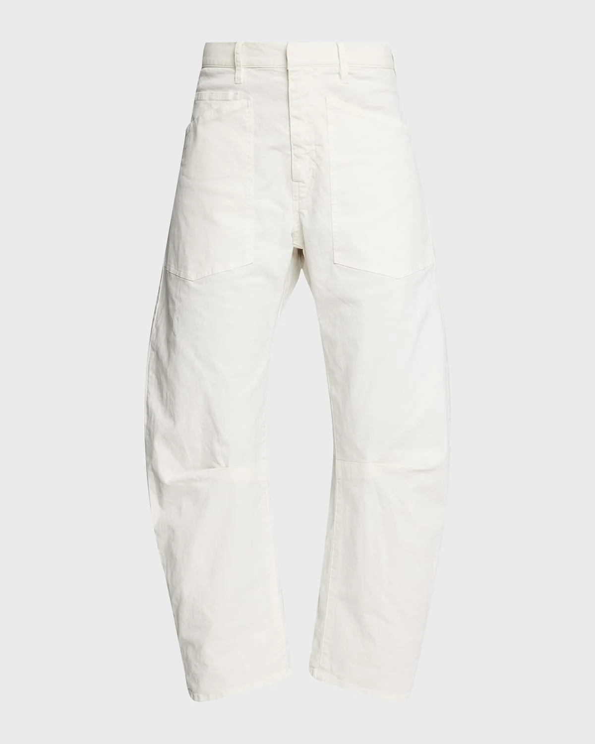 Nili Lotan "Shon" stretch twill pants.Mid rise.Front patch pockets; dropped back pockets.Curved silhouette.Cropped length.Hook-and-bar/zip fly; belt loops.Cotton/spandex.Made in USA.Size Note: Item runs large, consider ordering a size down.