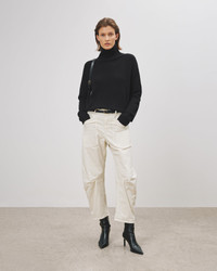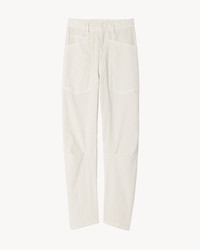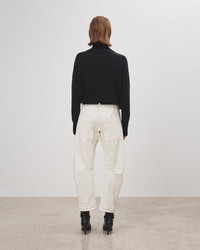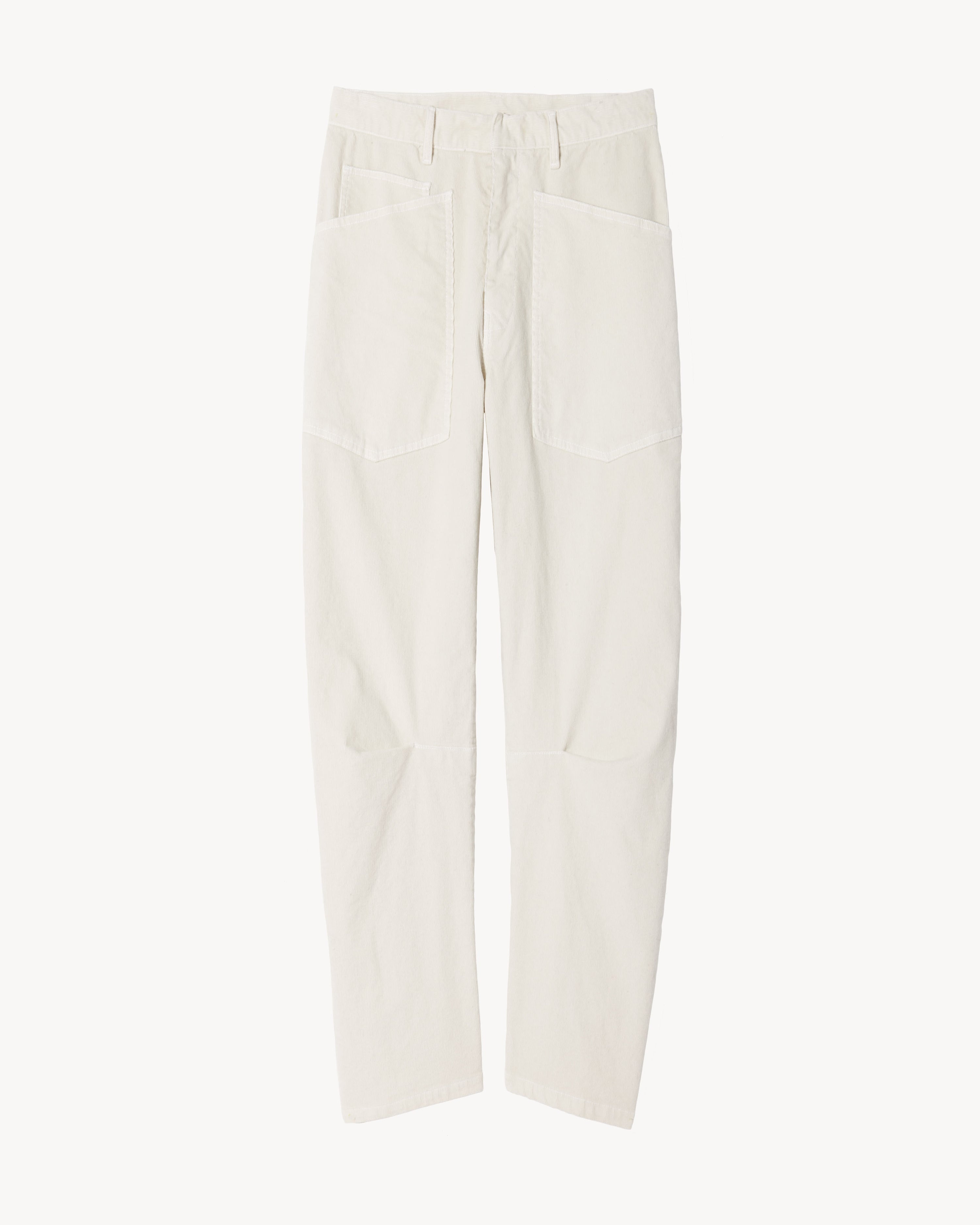 Flat front non-stretch bowed leg silhouette emphasized by darts. Zip fly and button front closure. Belt loops. Top-stitched front and back patch pockets. Made in USA SIZE & FIT Model is 5'11 and wearing a size 2. For exact measurements by size, view our size guide. COMPOSITION & CARE 98% COTTON, 2% ELASTANE MACHINE WASH COLD LOW IRON DRY CLEAN RECOMMENDED
